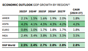 But how is the market sustaining, over the past 12 months MSC among other industry leaders have utilized blank sailings to reduce capacity, the economic GDP outlook for nearly all regions is expected decline going into 2024 followed by gains returning in 2025/2026 except for the Middle East and African regions, and the European region. Asia Pacific and Americas are expected to see decline with the Americas seeing the largest percentage drop between 2023/2024 at .6% and recover more slowly than other regions.