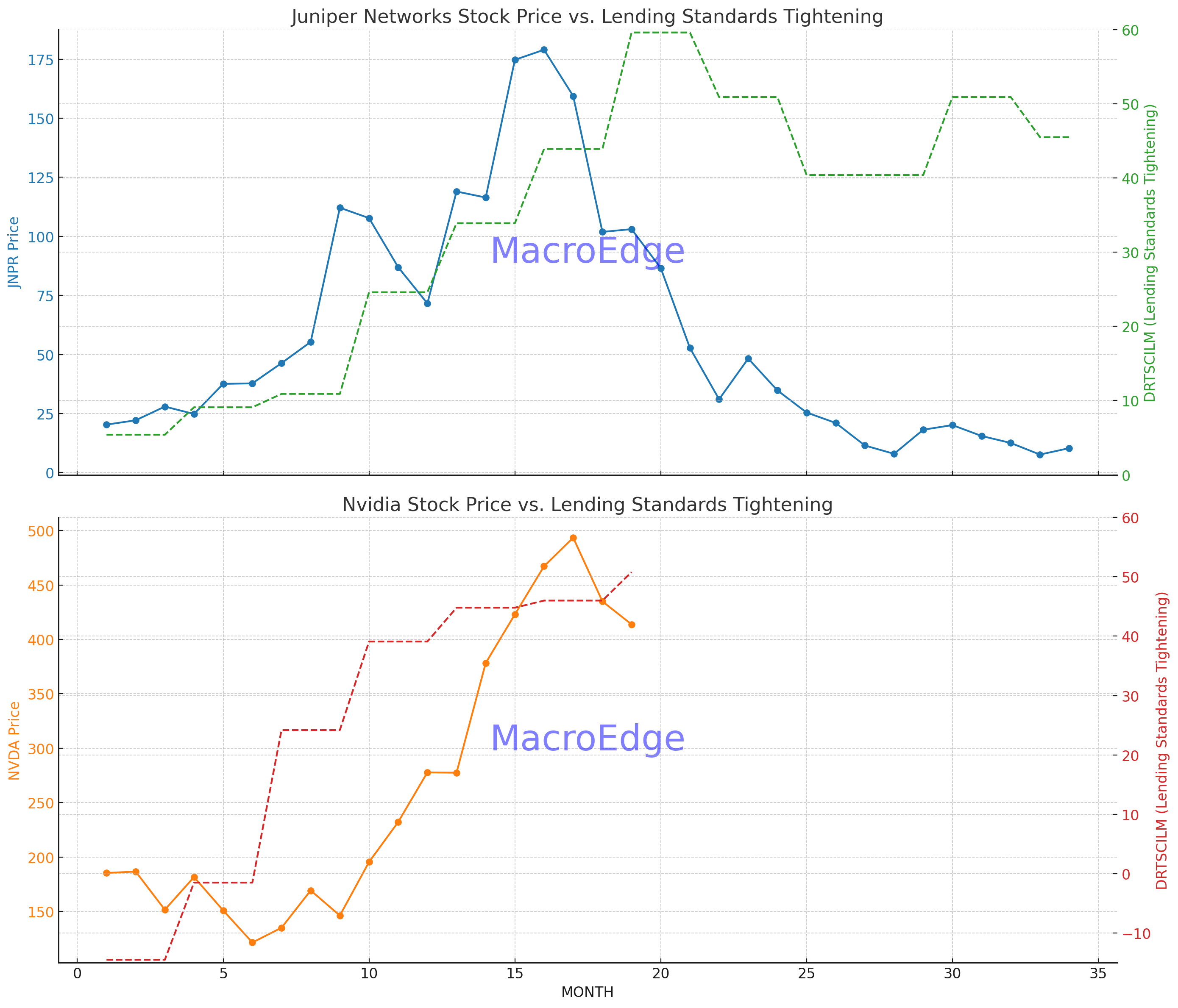 “The Survey of Loan Officers (SLOOS) provides insights into the lending practices of banks. When there is a 45% threshold on SLOOS, it implies a tightening in lending standards. Tech stocks, in particular, can be more sensitive to such changes. Many emerging tech companies rely on debt and external financing to fund research, development, and expansion efforts. Tighter lending standards can mean that these companies find it more challenging to secure necessary funding. Furthermore, the tech sector, known for its high growth potential, often carries higher valuations based on future earnings expectations. If there's any indication that their growth could be stifled by lack of financing, it can lead to a re-evaluation of these expectations. This re-evaluation can weigh heavily on tech stock prices, leading to potential sell-offs or reduced buying interest in the sector. However, a signal to watch out for is the green light that signals banks giving the all clear on relaxing their lending standards. This could mean that banks are now more willing to lend, potentially leading to a surge in tech financing and a bullish sentiment for tech stocks.” (Bernanke, B. S., & Lown, C. S. (1991). The Credit Crunch. Brookings Papers on Economic Activity, 1991(2), 205-247.)