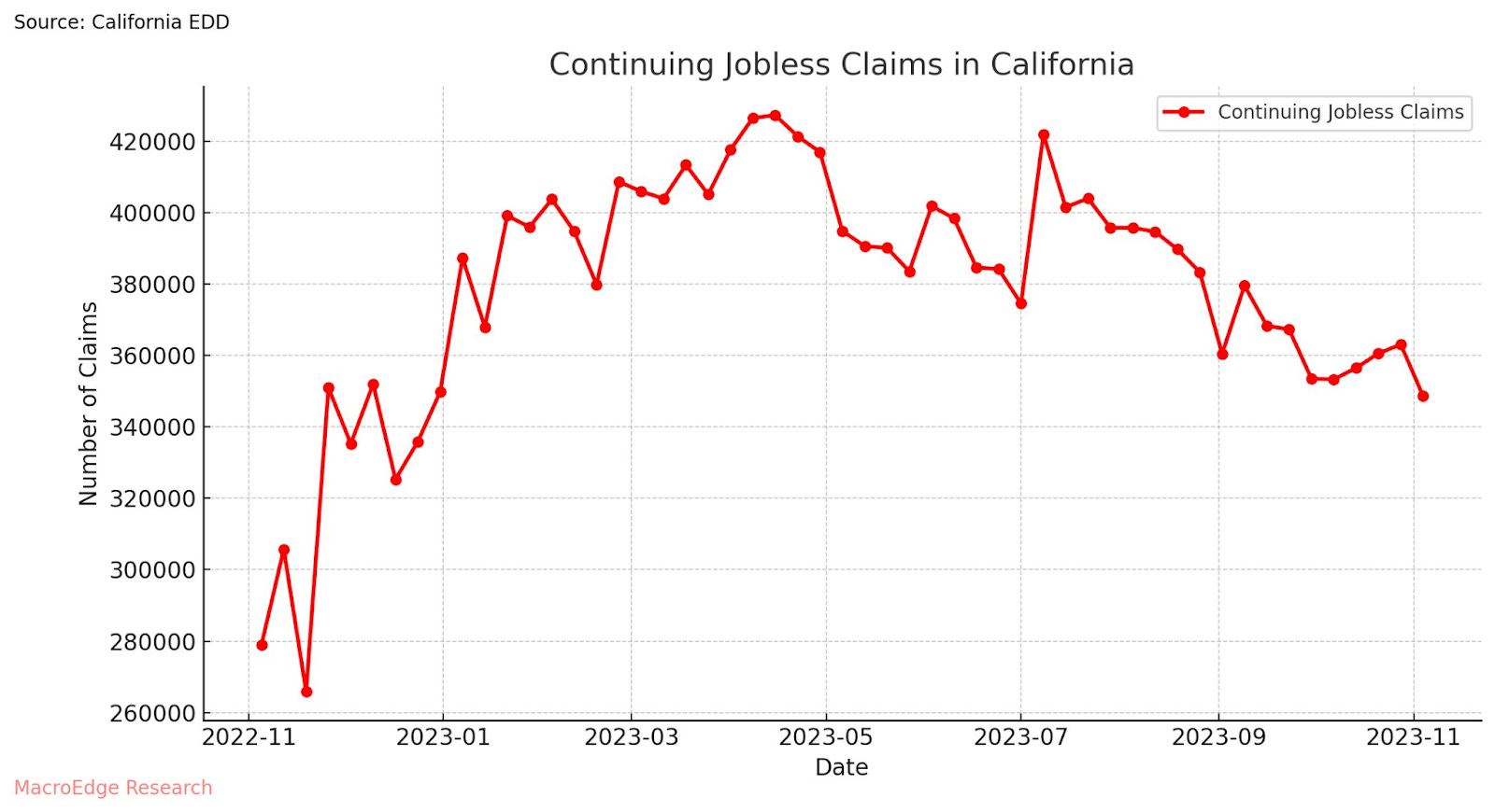 Jobless claims also fell in California to the lowest level since late 2022:
