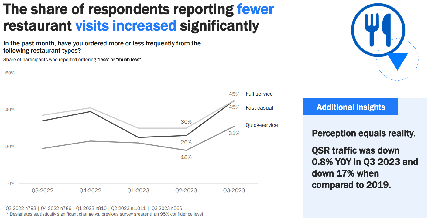 A significant portion of the population is reducing restaurant expenditure, according to the "Restaurant Consumer Insights Q3 2023" report. This shift in consumer spending patterns, crucial to the financial stability of the industry, has been driven by various factors, including economic uncertainty and concerns about rising prices. The industry's response to increased operational costs, through price hikes, has created a challenging balance between financial sustainability and customer value perception. While price increases are necessary to maintain profitability, they can also lead to a decline in customer visits