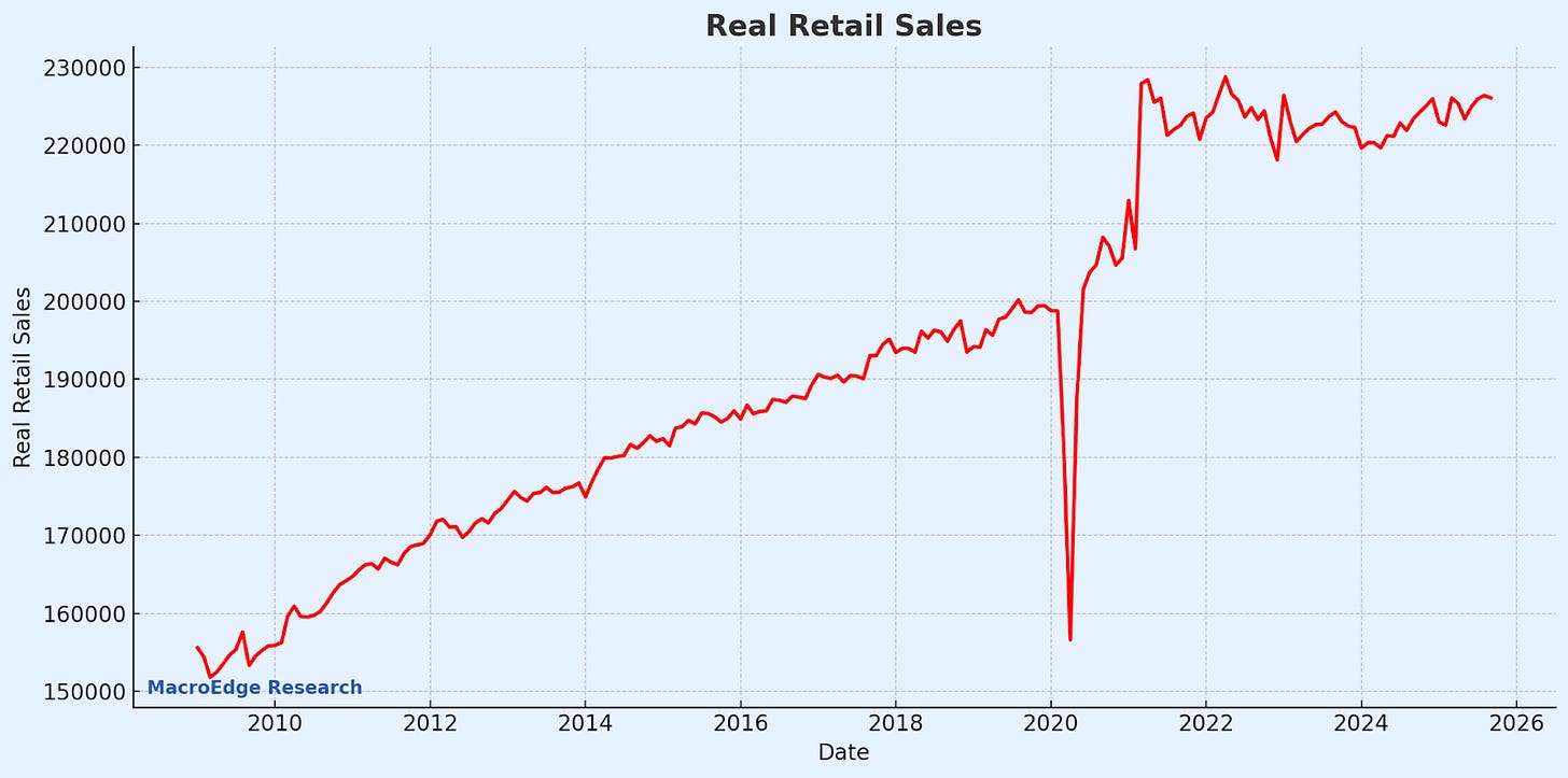 Real retail sales will tell us the *real* story when released, as nominal figures have largely just become an inflation peg: