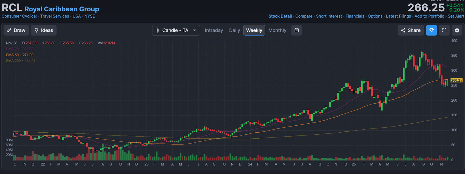 Cruise stocks, unlike airlines, have established a more bearish trend in recent weeks - with one notable player (RCL) consolidating now below the weekly (50), something it hasn’t done since 2023. With the candle of last week and downside from here, this could be setting up for a retest of the April lows, and potentially lower to the 200.