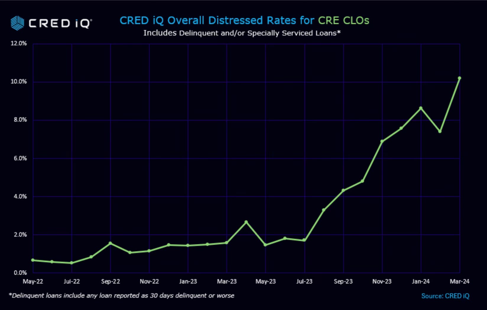 The distress rate for CLOs rose to a new all-time high, per CRED iQ.