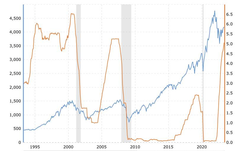 Monetary tightening of policy is still in effect and let us not forget the most important chart of all. Fed funds rate vs SPX:
