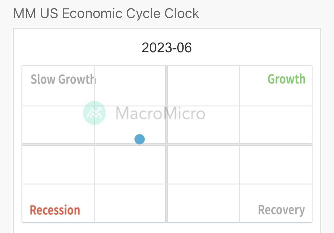 Our partners at MacroMicro’s MM US Economic Cycle Clock continue to move towards “recession” territory with stalling growth and headwinds present in the economy.