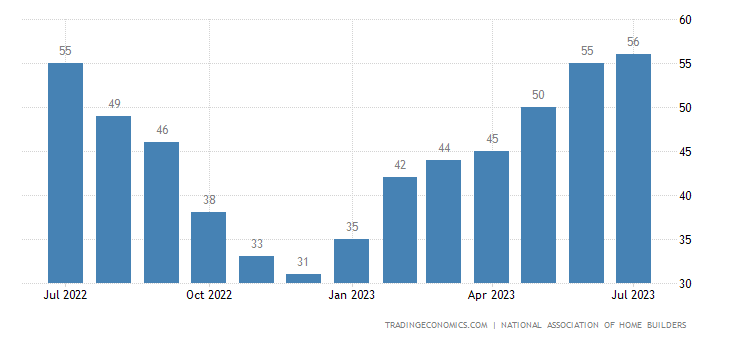 The bounce in the housing market that permabulls have been raving about appears to be slowing down NAHB index actual 56, previous 55