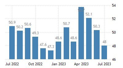 Judo Australian Service PMI in contraction territory again, small MFG sector there saw a bounce but still contracting Composite PMI actual 48.3, previous 50.1 Lowest since December 2022