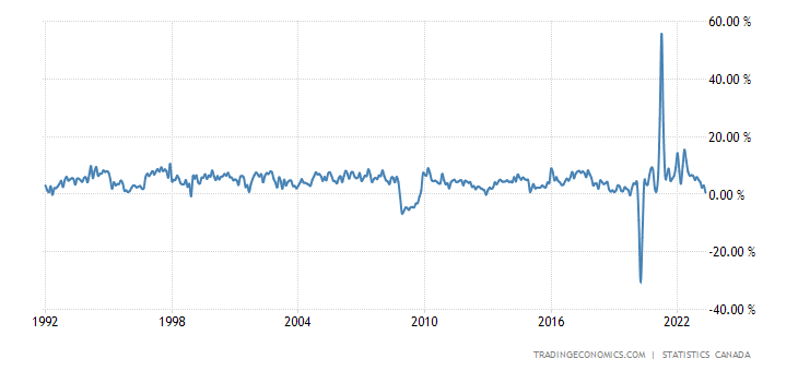 Canadian Retail Sales YoY index at its lowest level since the pre-stimulus madness in 2021.