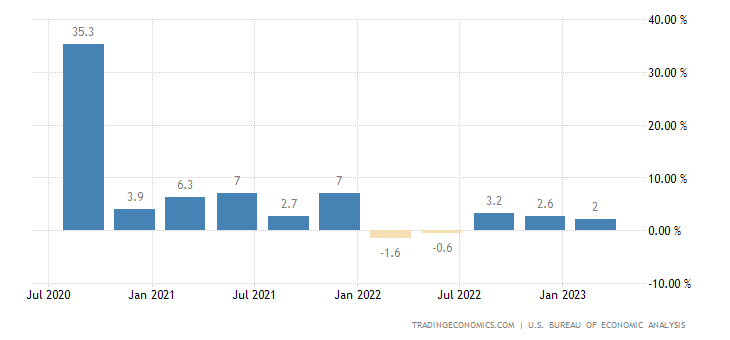 In Q1 - the economic growth in the US was strong seen below. The number came in above the consensus 1.4% although it revised down from the number at the peak. Looking at the trend it will be interesting to see if this number continues to slow into Q3 and Q4 as the Fed is forecasting and as they continue to take rates higher.