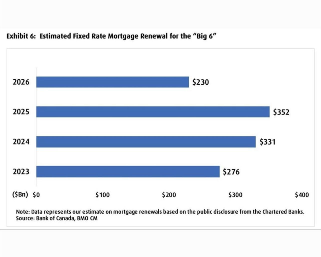 More than half of Canada's mortgages of $2.2Tr are floating. There is another $900bn that will renew into high rates which are 3x higher compared to pandemic lows.