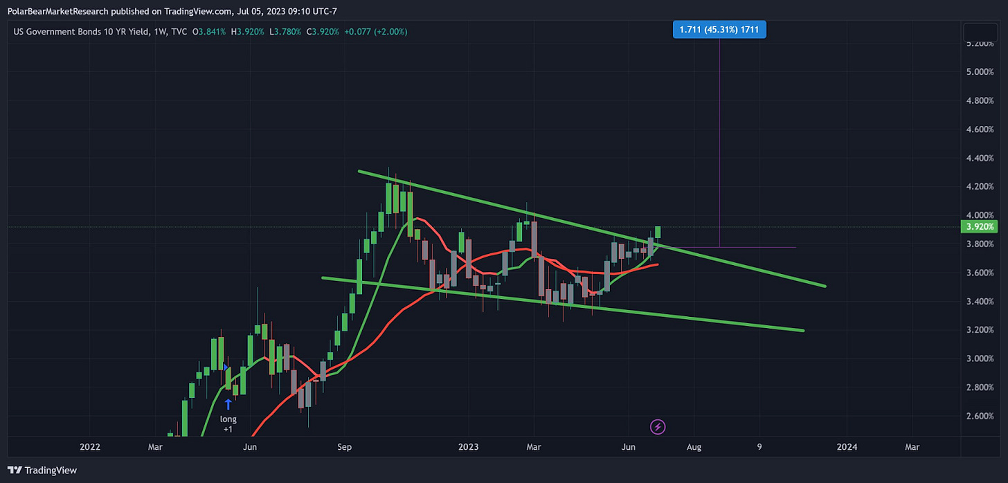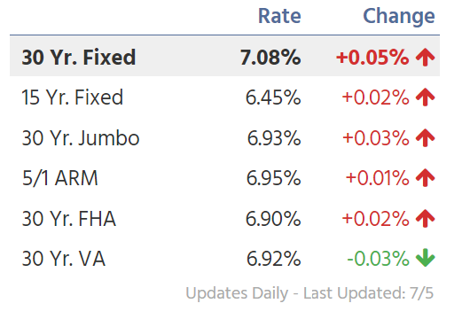 The 10 year yield broke out today - again pushing 4% - which is putting pressure on mortgage rates to the upside now seeing almost 7.1% on the 30 year fixed.