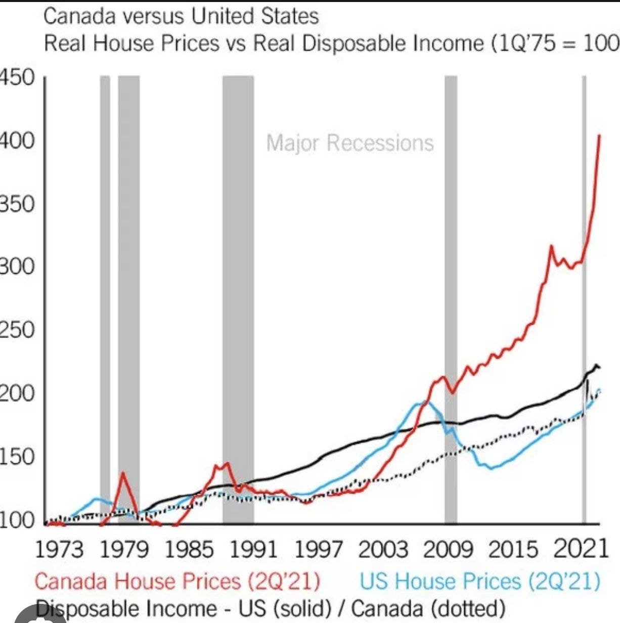 In addition Canada has a far worse housing price bubble completely divorced from incomes. So already very low affordability and mortgage payments getting repriced at rates means every household's budget explodes coupled with a core inflation that is entrenched at 4%+.