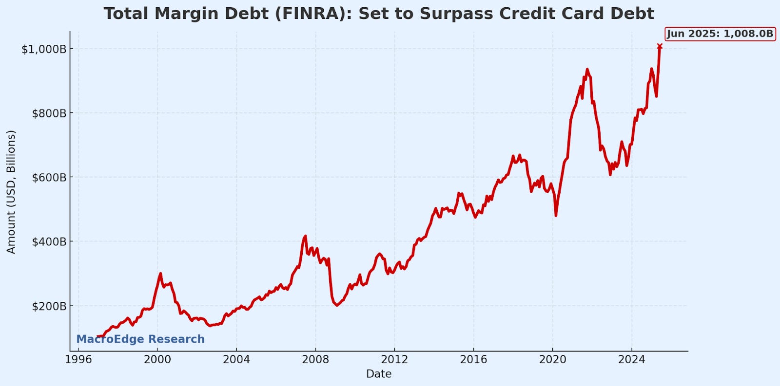 As just another example to answer my frequently posed question of ‘where in cycle?’... investor margin is set to surpass total outstanding credit card debt in July…