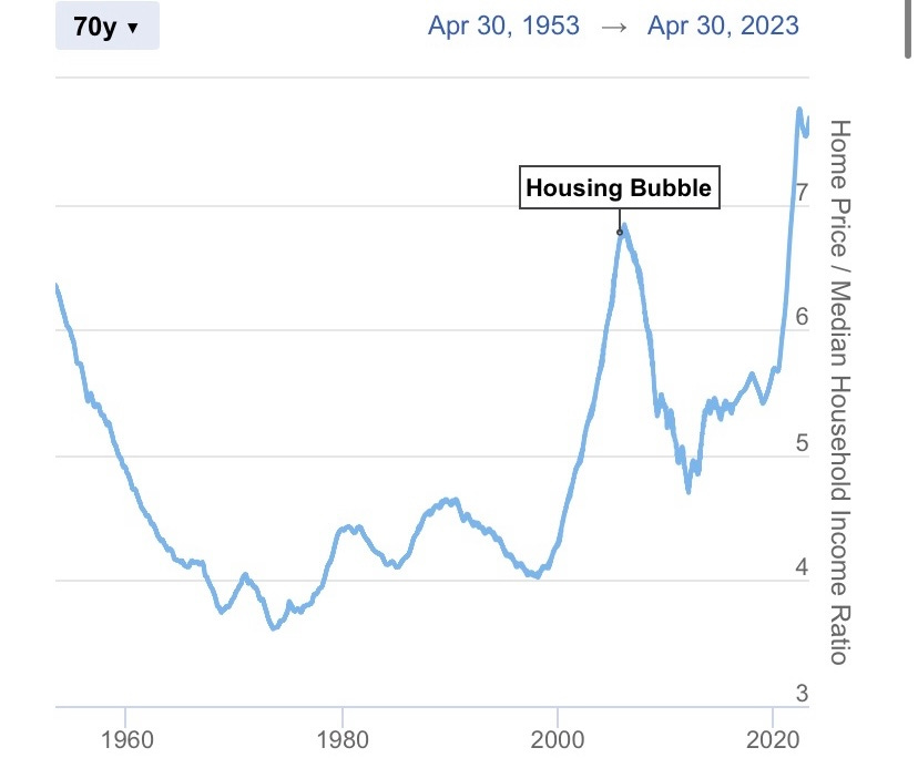 Here’s the median sales price peak of 2005 and trendline down into 2009. Vs. the median peak at 2021 and continued slide.
