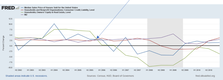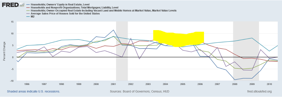 Another way to look at it is, once the liability level surpasses equity and money supply, things break. See 2005 vs Current. From 2005 to 2006 liabilities extended beyond the rate of change of equity and money.