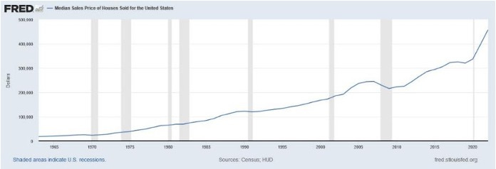Now while both represent something accurate, both are also not always accurate. These cycles can take many shapes. What they show is the amount over time, or rate of change depending on how you are viewing them. Here's a chart of the Median Sales Price for a new home. Kinda looks like Mania, right?