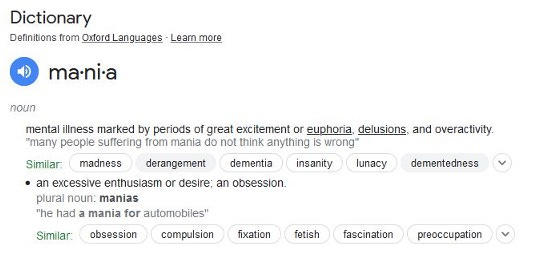 Thirdly, FOMO. The fear of missing out, keeping up with the Joneses, a psychological reaction. Mania.