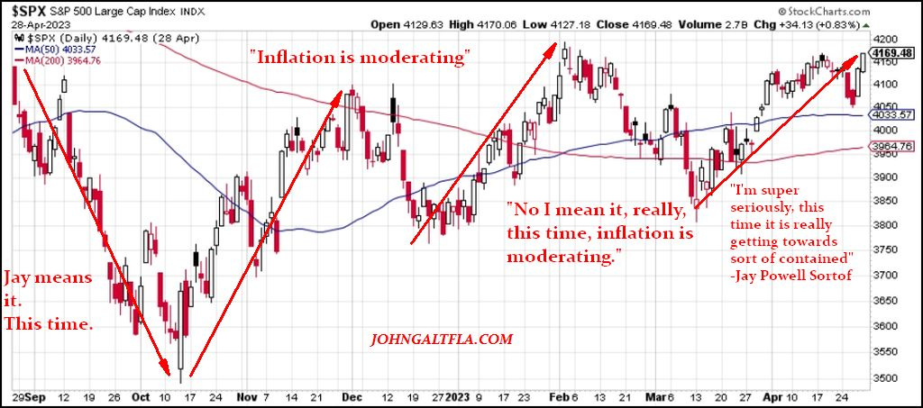 There is a chance, albeit slight, that Jay Powell has learned a Greenspanian lesson to baffle the befuddled boobs with broadsides of BS. Odds are though, because he believes he is smarter than the markets, the elites in DC, and the masses he’ll make a speech of great consequence and once again misread the room. Inflation is not under control by any realistic measure as disinflation does not result in deflation at current levels, which means that prices will remain higher for longer, further penalizing the middle and lower classes of our society.