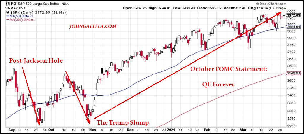 The S&P 500 chart displayed above was cut off by this author to not include the Covid insanity which happened in February and March of 2020. But heading into Jackson Hole, WY, the “virtual” symposium was interesting as hell, needless to say.