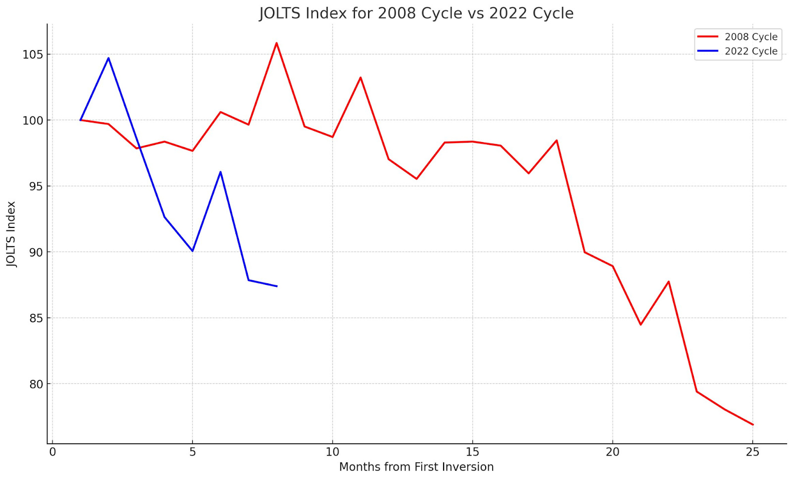 Regarding job openings - the Fed is closing up openings at a quicker pace than the 2008 cycle - you can view the comparison of the 2022 JOLTS index to the 2008 index which is in % terms of total job openings off of the high. Given that we are trending out of summer as well - it’ll be interesting to see if we get further shrinkage of this number as the Fed continues its hawkish agenda in the battle against inflation: