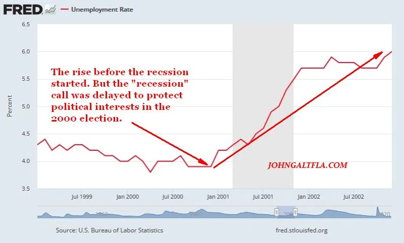The shadow recession almost got Al Gore elected. Thankfully it did not. Unfortunately, the GOP alternative was not much better and unemployment spiked with the blame put on 9/11 even though the acceleration in layoffs started long before the attack.