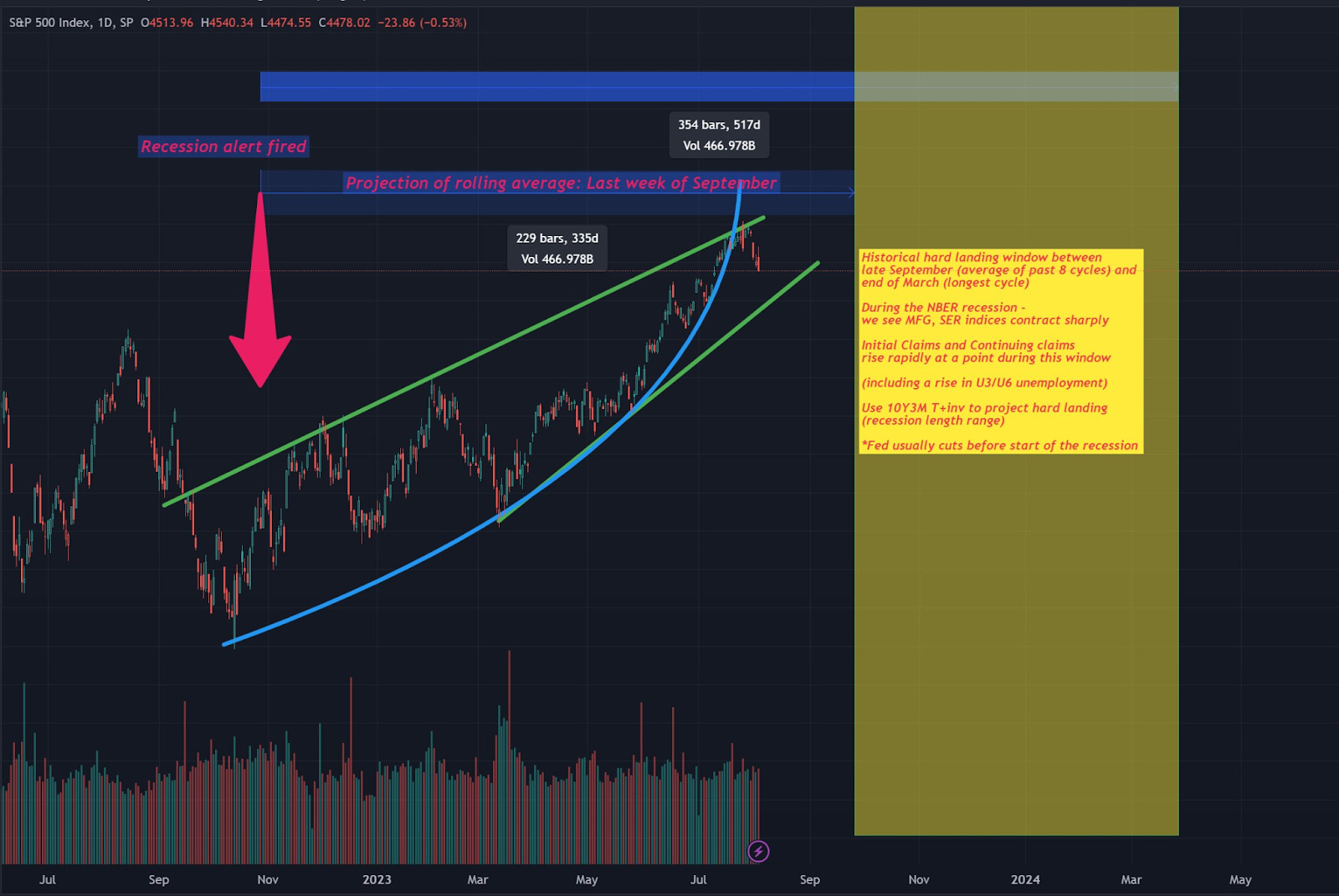 For now - the music continues to play, but see my comments below on my original recession forecast post for more thoughts as we approach the ‘hard landing window’ - where the probability of a hard landing starting will be highest based on historical data…