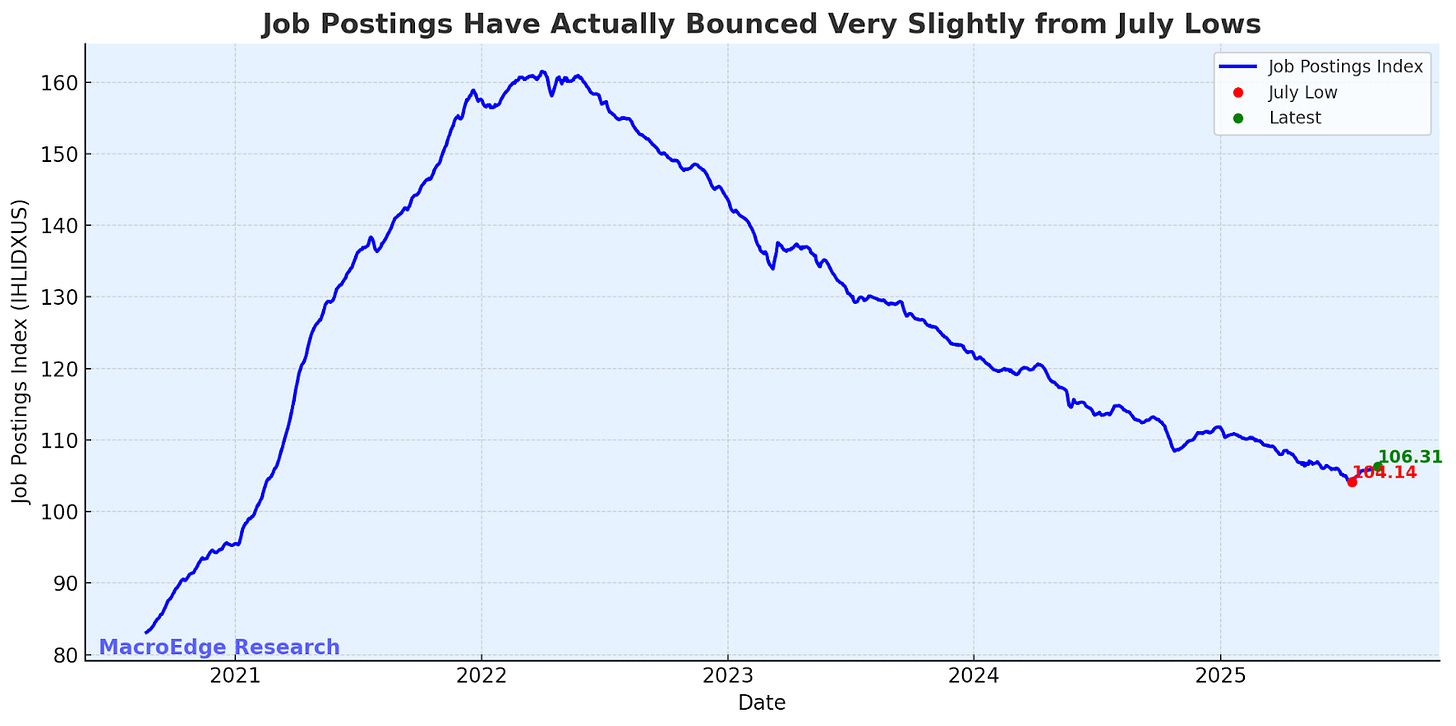 Job Postings have rebounded from their July low, per Indeed: