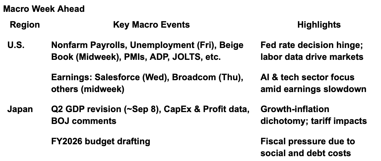 As we wind down the long Labor Day weekend (hopefully you had an enjoyable one), we will keep things short tonight. We will cover what to be prepared for in the week ahead from a macro calendar standpoint, reflect on the summer wrap-up as we head into fall, and look ahead to the FOMC rate decision that is just a few weeks away. There is a lot to watch in the data, and we will outline the calendar for the week ahead and more.
