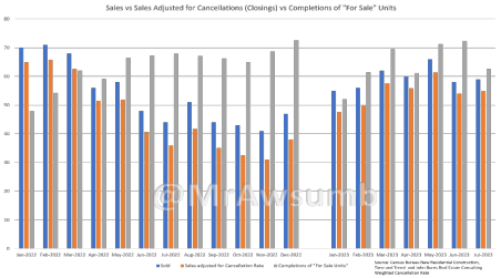 When I applied these cancellation rates from January of 2022 through February of 2023, and used a very modest 7% cancellation rate for March through July 2023, we get this: