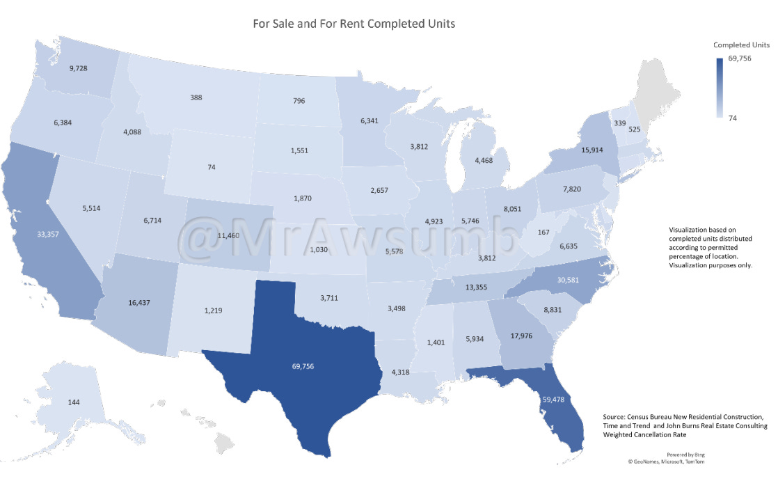 Just for a visual, here’s another map that contains all the unsold for-sale completed inventory, and all the unrented for-rent apartment completions. Again, where they fall will likely be different based on sales, but if they were equal to their permitted starts, this is a fun visual: