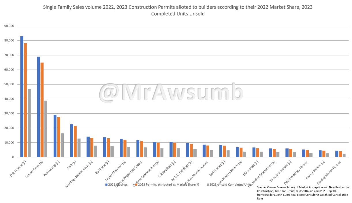 With homebuilder earnings coming up, I think this is important information to know given the fact that there’s a ramping of inventory on top of the pressure of continued buying down of rates.