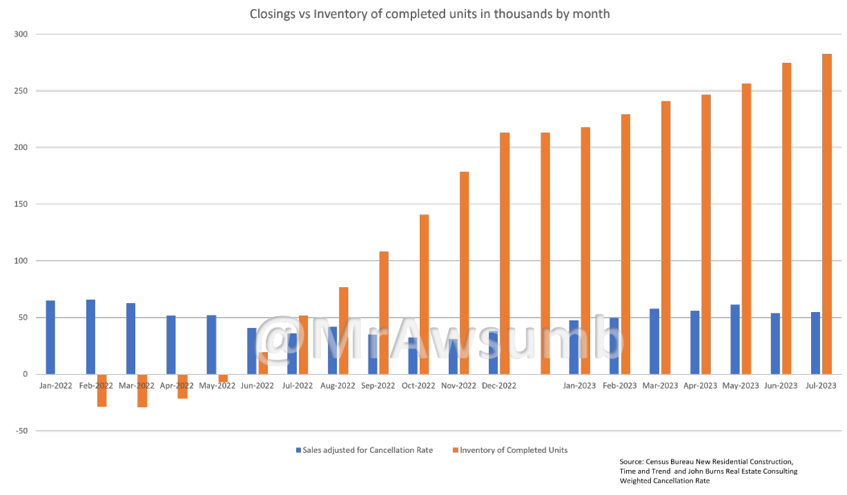 Since the second quarter of 2022, inventory has been stockpiled. Here again is the inventory of completed for sale units on a month-by-month basis:
