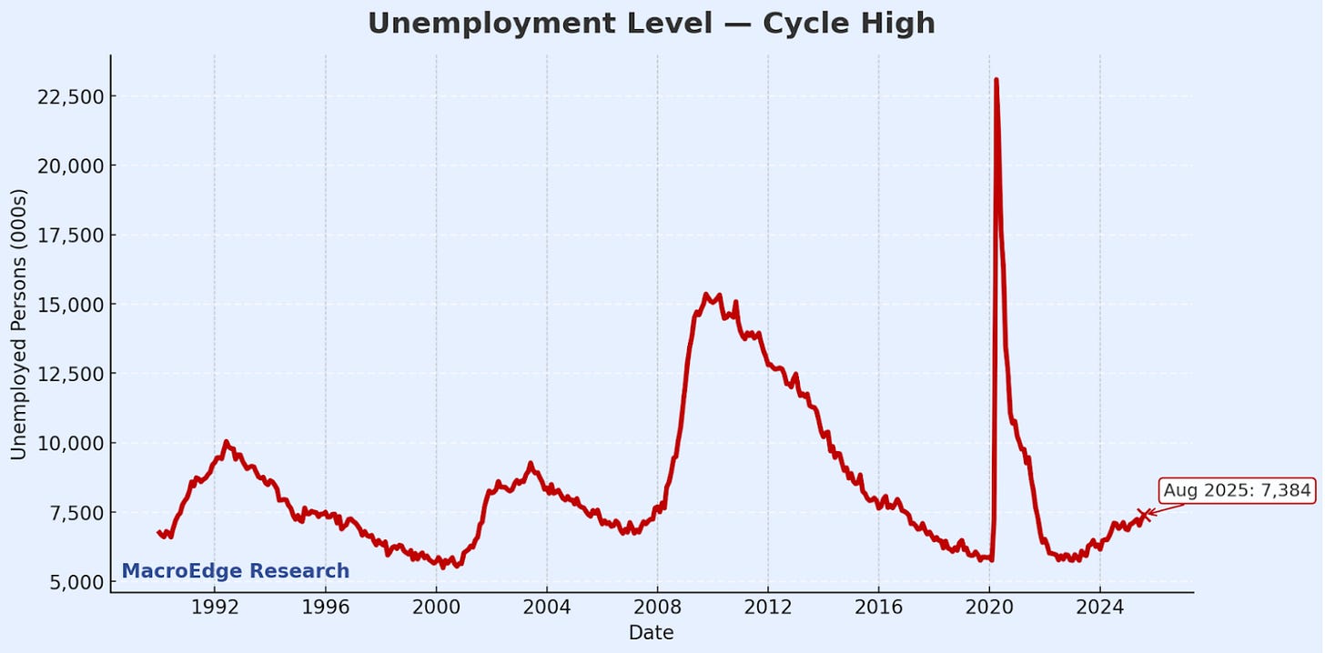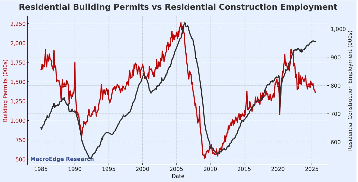 A soft jobs print as expected. My forecasted -10K wasn’t far off from the final print. The employment situation continues to cool gradually, and notably, Trump mentioned that we should expect the real data - about 12-months from last months’ print (also said similar about GDP growth). If rate cuts continue to impact the major cyclicals - such as residential real estate construction employment - things are going to get more interesting and complicated for policymakers into the winter.