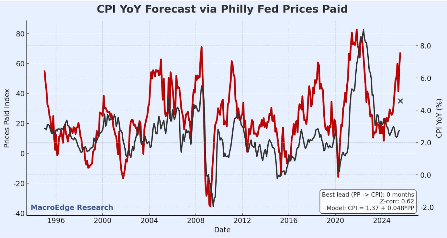 The imputed impact on a potential rise in CPI from Prices Paid can be seen in one model I created -