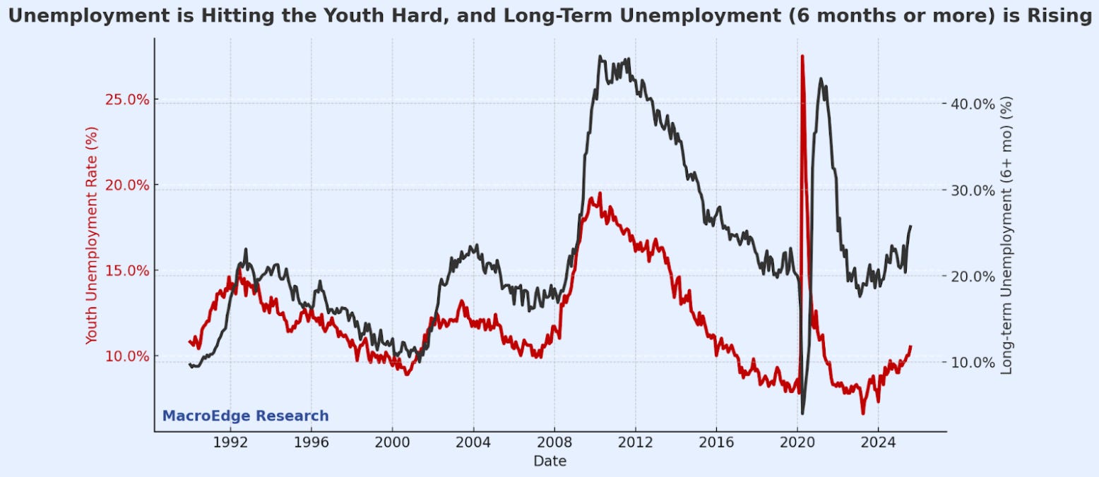 Slow moving impact to unemployment this time, but still seeing a 10y3m normalization in the next 12 months and the youth are getting hit hard this cycle.