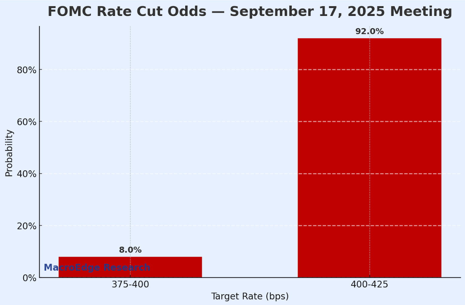 Rate cut odds spiked to 100% - with the odds of a 50bp cut increasing to a meaningful 1/10 shot: