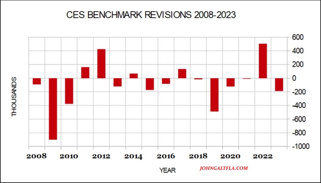 The requirement to suspend belief is buried within the methodology and reality. For example, revisions to the 2023 headline reports was proudly touted in the ESS this past week as demonstrated within this chart below: