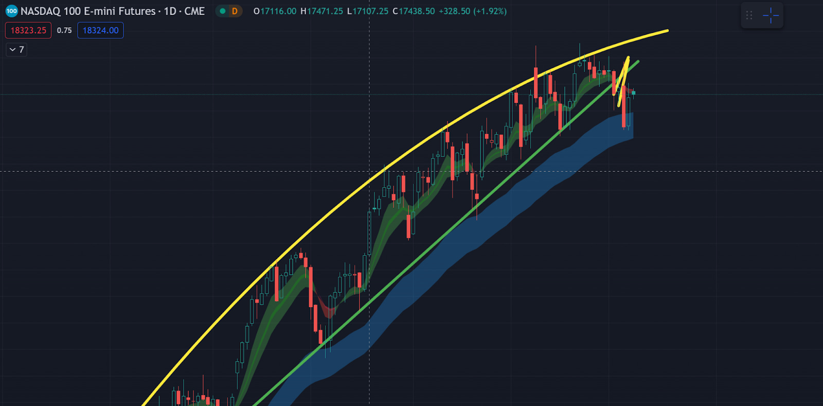 An update to the very interesting ‘round’ chart pattern occurring on the Nasdaq: