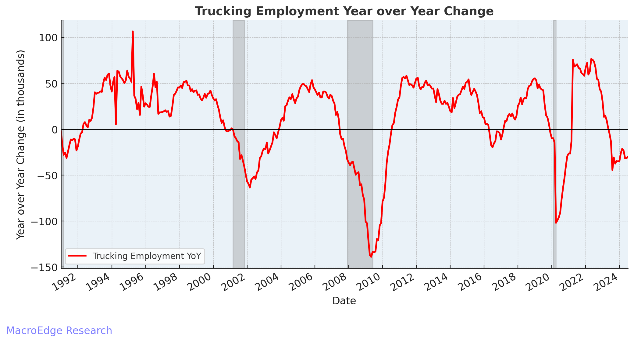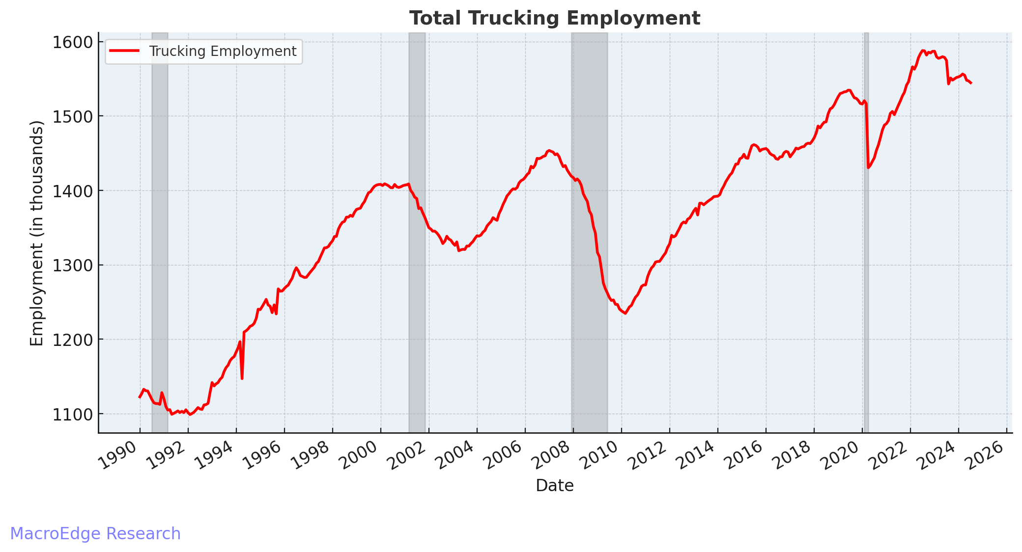Tonight we’ll focus on some of the key cyclical employment areas (trucking, construction, manufacturing, information, leisure/hospitality, real estate and retail)