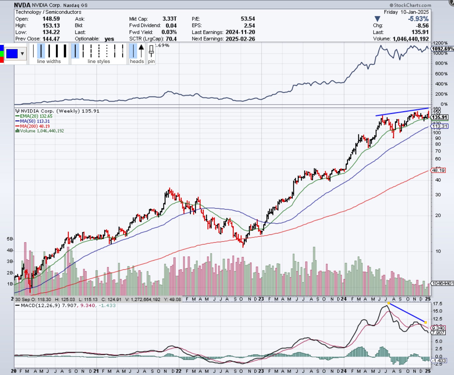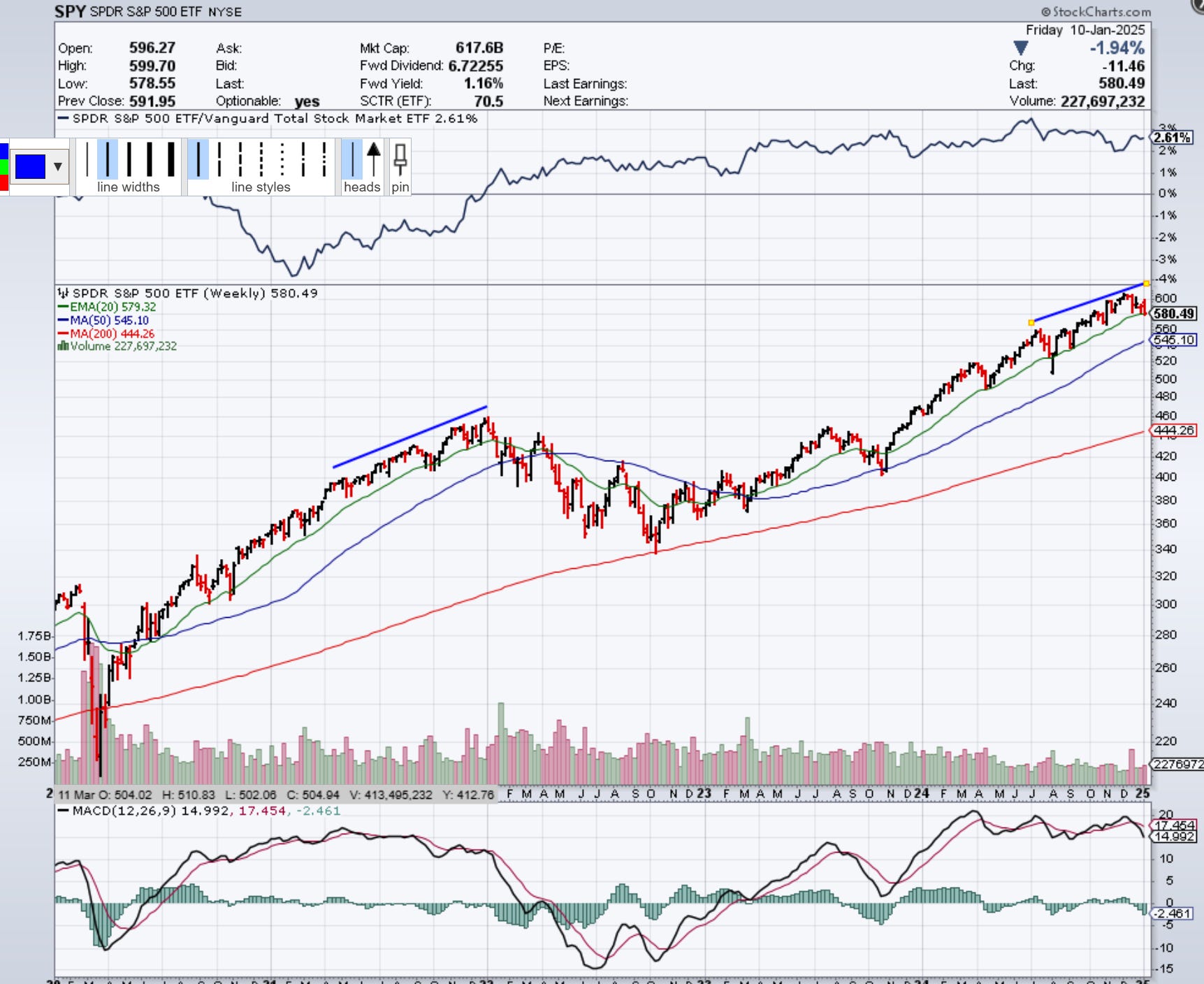 More obvious warning signs, especially if this confirms below the EMA (20) to end January.