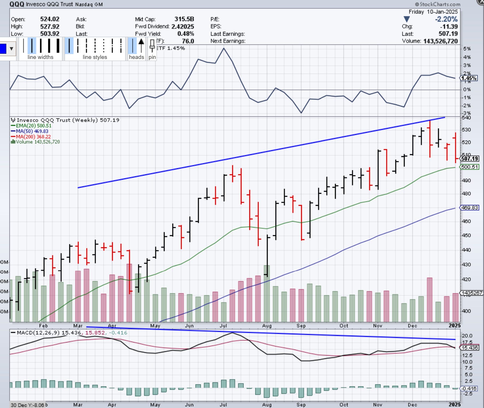 Tech Sector Weekly (QQQ) - Bearish Divergence Confirmed