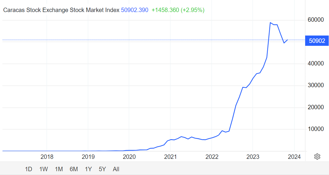 Pundits and experts alike continue to be baffled why the everyday W2-American is the most pessimistic that they’ve ever been on the economy and that’s because most of these pundits and experts are 50,000 miles detached from the reality of the everyday experience that most Americans have when they go a trip to the grocery store (where it’s $300 to feed a family of 4), a stop at the pump (to see that prices have again risen by 20-30% in most states), paying property and home insurance that has run out of control relative to the baseline CPI increase they cite… the list really goes on and on here. My point is - when these people attempt to make a point - they show their true colors and ignorance. Some on X like Ryan Detrick (with his honorary CMT badge) wonder why Americans are unhappy that the Dow hit 40,000 - roughly half of America doesn’t even half exposure to the equity market itself. He also wondered why CPI mattered anymore given the fact that ~60% of us have fixed rate debt on cost of living expenses (tell that to those of experiencing huge home insurance premium shocks, property tax increases, et al.). There are countless examples of countries that have prioritized the value of paper assets against their long term future and that certainly hasn’t ended up well throughout history. This isn’t a ‘doomer’ point as some pea-brains may call it on whatever platform of choice you choose to engage with people on, it’s reality. The pathway we are on as a country is not only completely irresponsible, it’s completely unsustainable in the long run and we should be very cautious of celebrating rising asset prices in the case of hundreds of other issues resulting in said asset price increases… From 30,000 feet you might think this is a country with a thriving stock market, but this is the performance of Venezuela’s stock exchange since 2018, up 500% in nominal terms… I wonder why the people of Venezuela are not celebrating in the streets at their new found paper riches