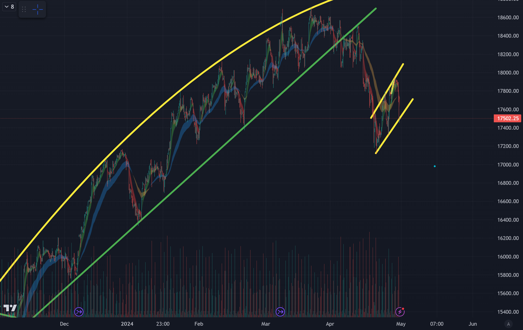 There will probably be some volatility as a result of whatever Powell says tomorrow either way - but I wanted to briefly turn our attention back to the larger technical formation that has been quite concerning to me over the last two months. We first started to discuss this pattern back in late March and things have progressed as expected thus far: