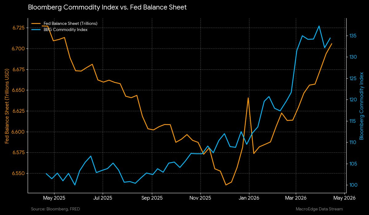 Fed balance sheet versus Bloomberg Commodity Index: