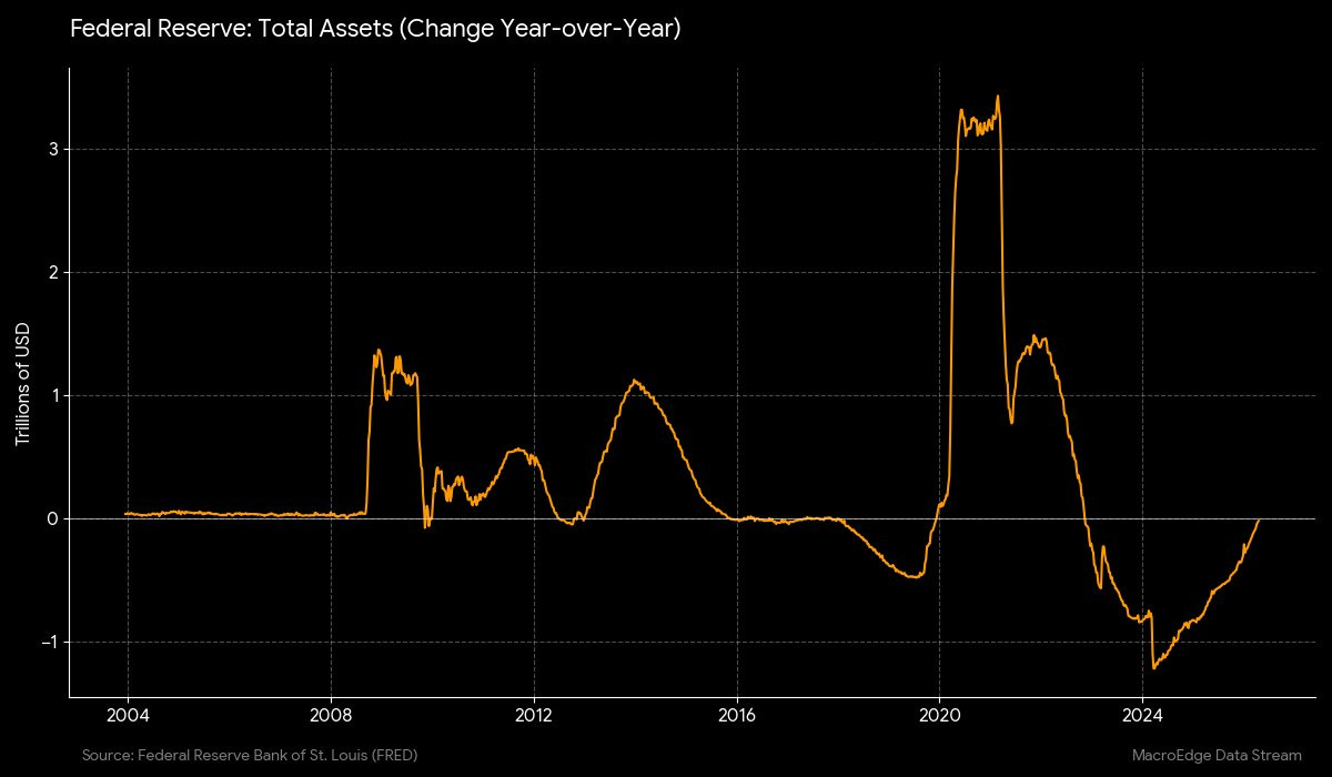 Fed balance sheet since last April, almost positive on the y/y readings now: