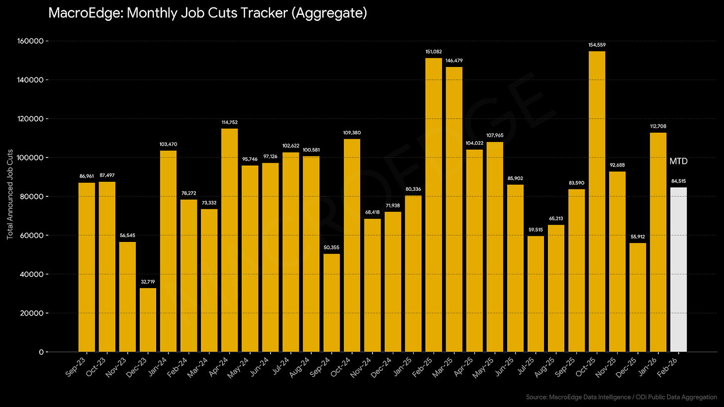 For job cuts (measured by us) → we’re above 84,000 on the month and will likely end this short month about 90K. The Block layoff today was sizable, and there have been other sizable cuts for the month.