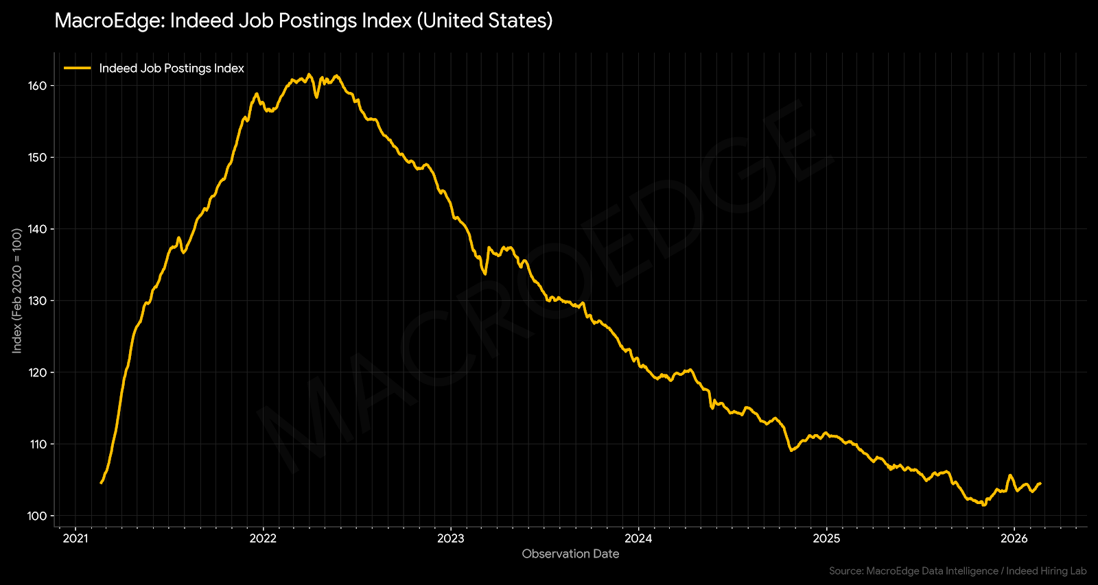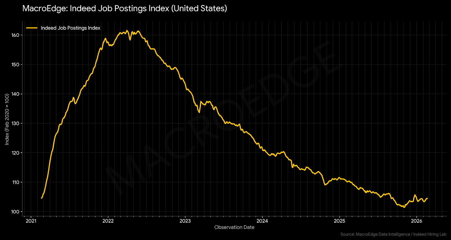 The labor market is sitting in a holding pattern through the month of February, with job cuts elevated and job postings still a bit off of their cycle lows. We’ll likely see the December and January improvement hit JOLTS come March or April, and I expect that the moves will be exaggerated to the upside, given issues with JOLTS of late from a data quality standpoint.