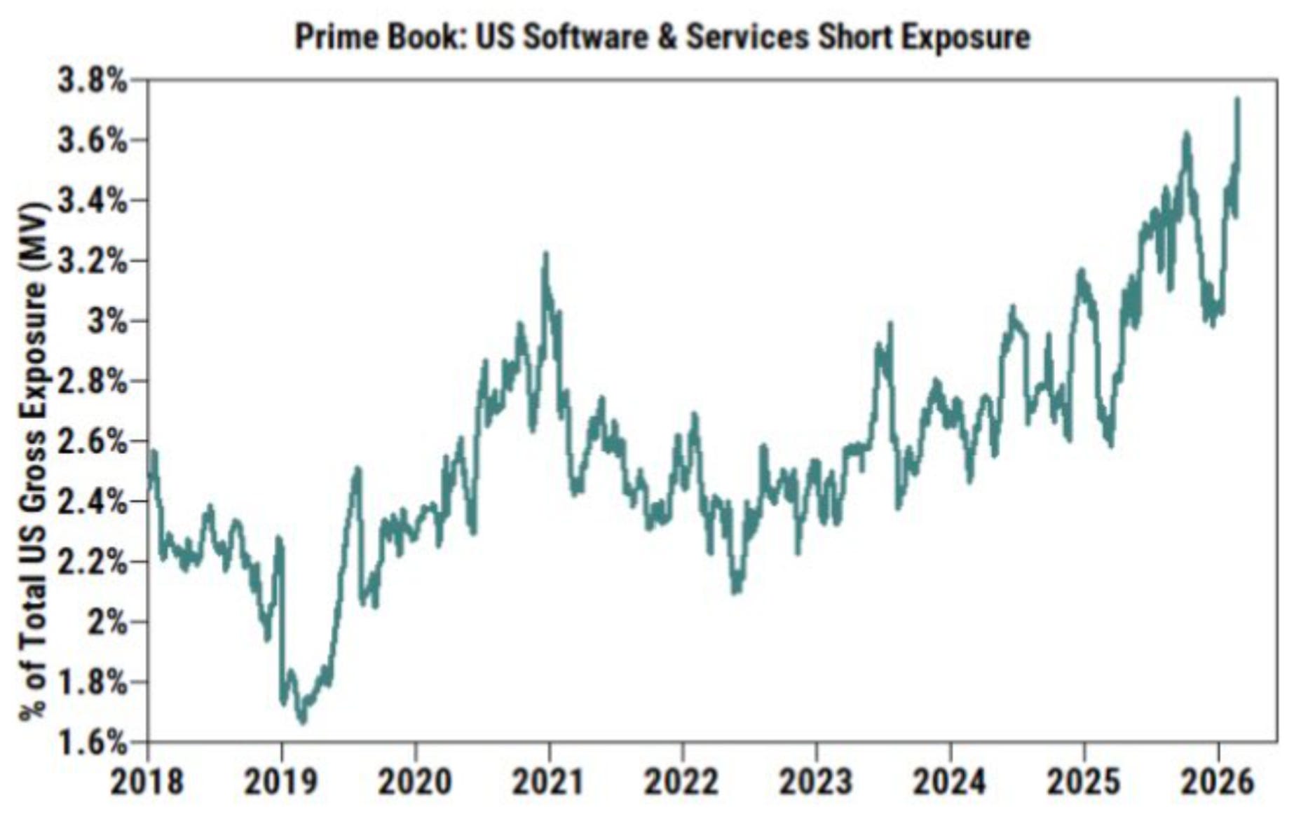 Regardless, positioning is highly stretched. If you can wrap your head around Jensen Huang’s statements about AI being a tailwind for enterprise software instead of a headwind, along with extrapolating forward the consequences of the market heavily rewarding a large software/fintech company for reducing headcount, you have the ingredients for a monster sector rally.