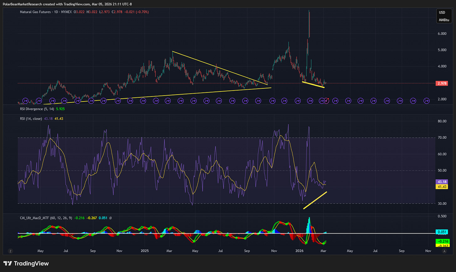 While US Henry Hub prices have not yet made a material move, global LNG prices have made a large move higher, as Iran has caused widespread natural gas infrastructure shutdowns across the Middle East, and the longer that supply remains offline, the more persistent the global LNG price premium will be. Dutch and Platts (asian) LNG prices have rallied over 50% this week relative to /NG (Henry Hub).