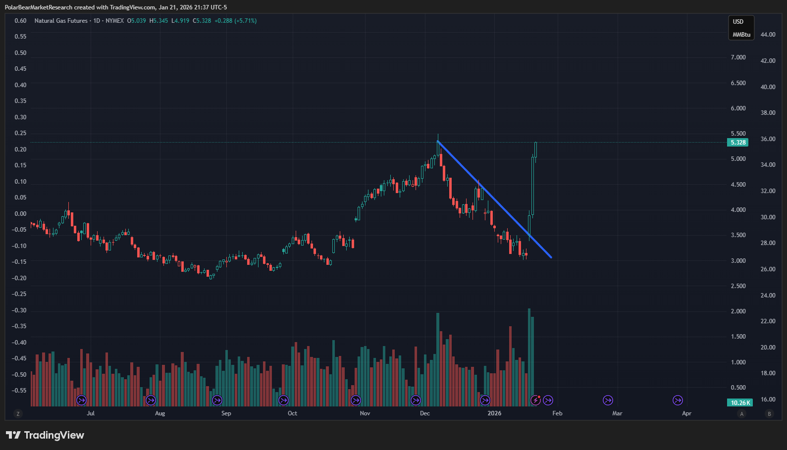 Natural gas since the weekend mention: